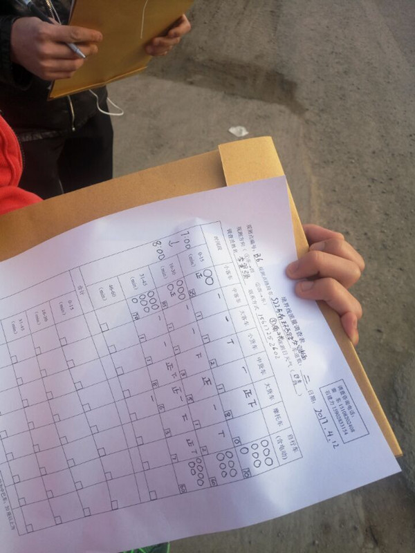 为有效收集一天中车流最为密集的早晚高峰数据,12日清晨5点,同学们就已经在校门口集合完毕,分六组乘车驶向我市各重要路段,开启了一天的忙碌工作。为得到客观准确的调查信息,从清晨5点半进入观测点至傍晚8点观测结束,将近15个小时,学生们不辞辛苦、任劳任怨,像执勤交警一样坚守岗位,实时进行分方向、分时段、分车种的双向断面流量观测,收集整理了宝贵的一手数据。