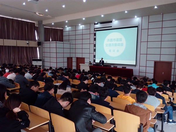 本次活动旨在通过对许昌市所有区、县重要路段机动车和非机动车的观测,重点查清许昌——长葛——新郑一线的市域交通流交换量及分布,全面掌握我市关键截面的交通流量状况。活动前一天,来自西南交通大学的技术团队对我院学生进行了专业培训,在西南交大老师们的耐心讲解下,同学们很快熟悉了工作任务、观测方法与统计手段,为次日的调查活动打下了良好基础。