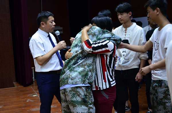 接下来,北京商鲲教育控股集团教育专家李春景教授作感恩教育的演讲,他用自己成长的经历作为实例向大家亲切的讲述,语言诙谐幽默,生动真诚,李教授用互动的方式,激情的语言唤醒了学生们心灵深处冰冻的情感,讲到动情之处,学生们不禁流下了感动和内疚的泪水,最后李教授邀请学生和学生家长到台上的互动环节学生和家长的真情流露把整个活动推向了高潮。在感恩的语言和动情的泪水中本次活动圆满结束。