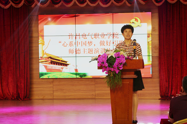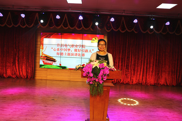 来自党委办公室的肖莹莹老师用《青春因梦而闪光 电院因我们而辉煌》,表达了自己作为老师的无怨无悔;公共教学部的卢营老师《千秋之约 师魂无边》,诠释了作为一名教师的自豪和发自内心的幸福感;纪委监察审计处的王众毅老师《守望梦想 静待花开 》,抒发了教师的爱与责任;艺术系的白鸽老师用《师德铸就中国梦》表达了自己对学生的关爱和呵护之情;信息工程系的薛小瑞老师用《怎样做一名好教师》讲述了自己在从教路上求索、学习、实践和成长的故事...... 他们的演讲深深感染着现场的每一个人。这次比赛不仅是一场难得的视听盛宴,而且思想性、教育性极强,意义深远。