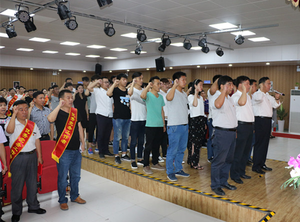 最后,在党委书记杨鲁西的带领下,全院新党员在党旗下进行了庄严宣誓,在场的全体老党员也一同重温了入党誓词。