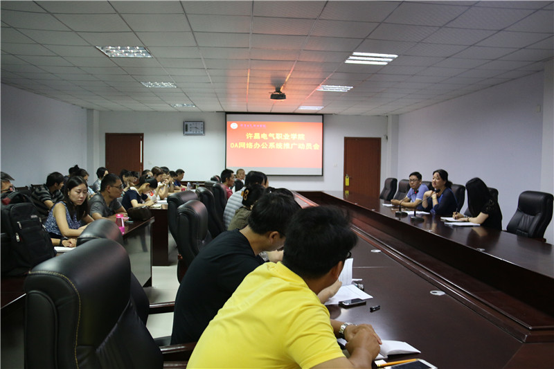 为贯彻落实《河南省人民政府关于加快推进教育信息化建设工作意见》精神,加快推进我院信息化建设,切实提高学院整体办公效率,早日实现学院无纸化办公,8月25日上午9:00,学院OA网络办公系统推广动员会在行政楼第一会议室顺利召开。会议由院办秘书科郝园园主持,组宣部长张明慧、院办主任李松涛、精华科技工程师及各部门信息管理员参加会议。