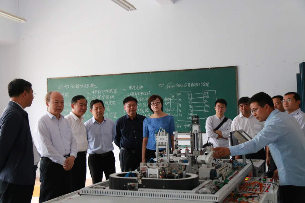 在实训车间参观调研时,我院实训老师对实训设备配备、使用、操作情况进行简要介绍,杨院长表示学院教学设备设施的配备齐全得益于全民技能振兴工程、高技能人才培养基地等项目。刘主任表示学院设备设施十分先进,对于学生学习掌握职业技能非常有帮助。张处长表示省里将进一步加大项目覆盖深度和广度,以项目促学校发展,增强对我院发展支持力度。