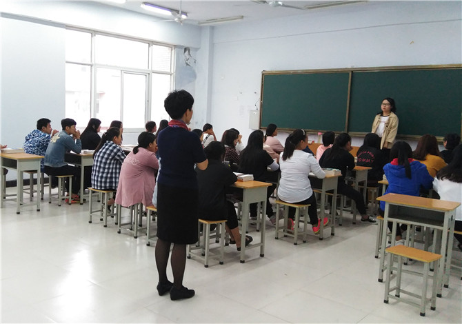 9月4日,是新学期的第一天。尽管天气下着冰凉的秋雨,教务处全体职工在潘俊峰处长的带领下一大早就来到教学楼,对新学期的各项工作进行例行检查。教学楼的教室里已经传来了老师们此起彼伏认真讲课的声音。 通过后门的玻璃窗可以看到每一个学生都安静的坐在凳子上听讲,并不时做着笔记,并没有因为是第一天课就松懈。