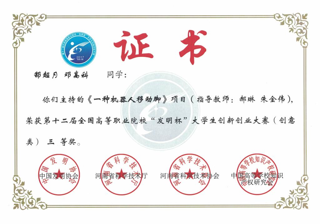 本届大赛由中国发明协会、河南省科学技术厅、河南省科学技术协会、中国高等学校知识产权研究会共同主办。学院高度重视此次比赛,多次动员和安排部署,刘涛副院长和冯朝印副院长多次指导参赛作品制作,经过招生就业处和各系部共同努力,共甄选9件作品参赛。