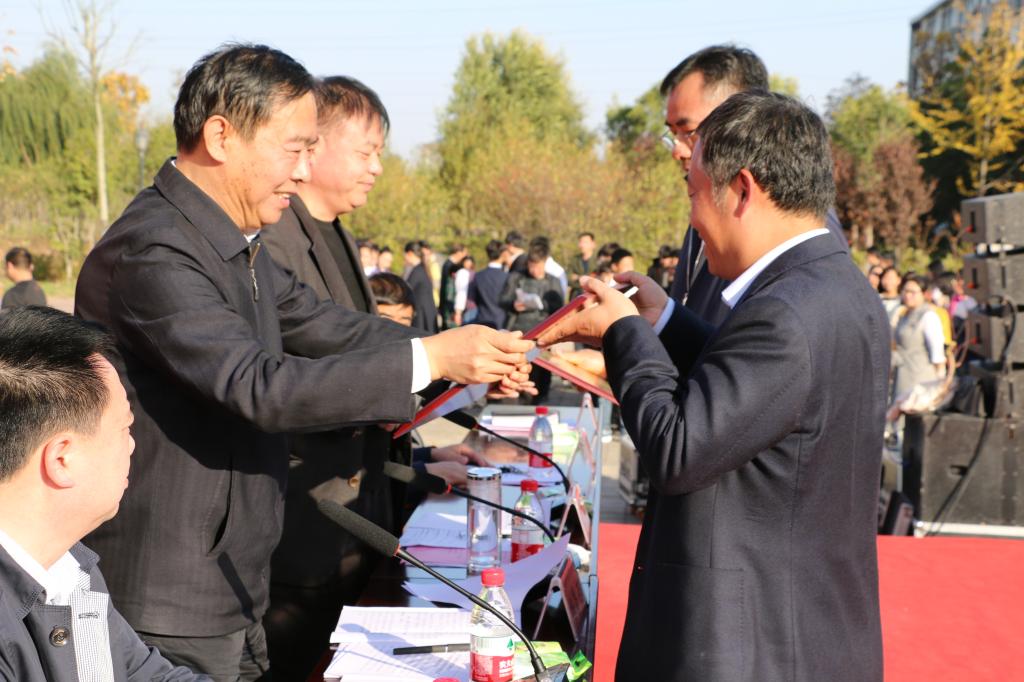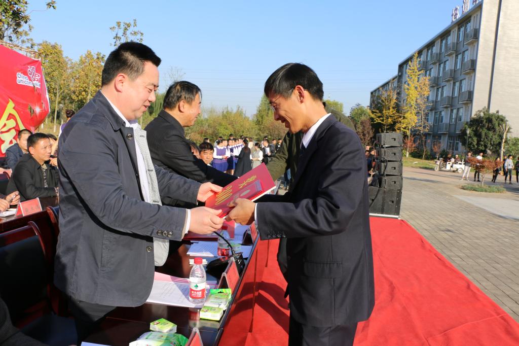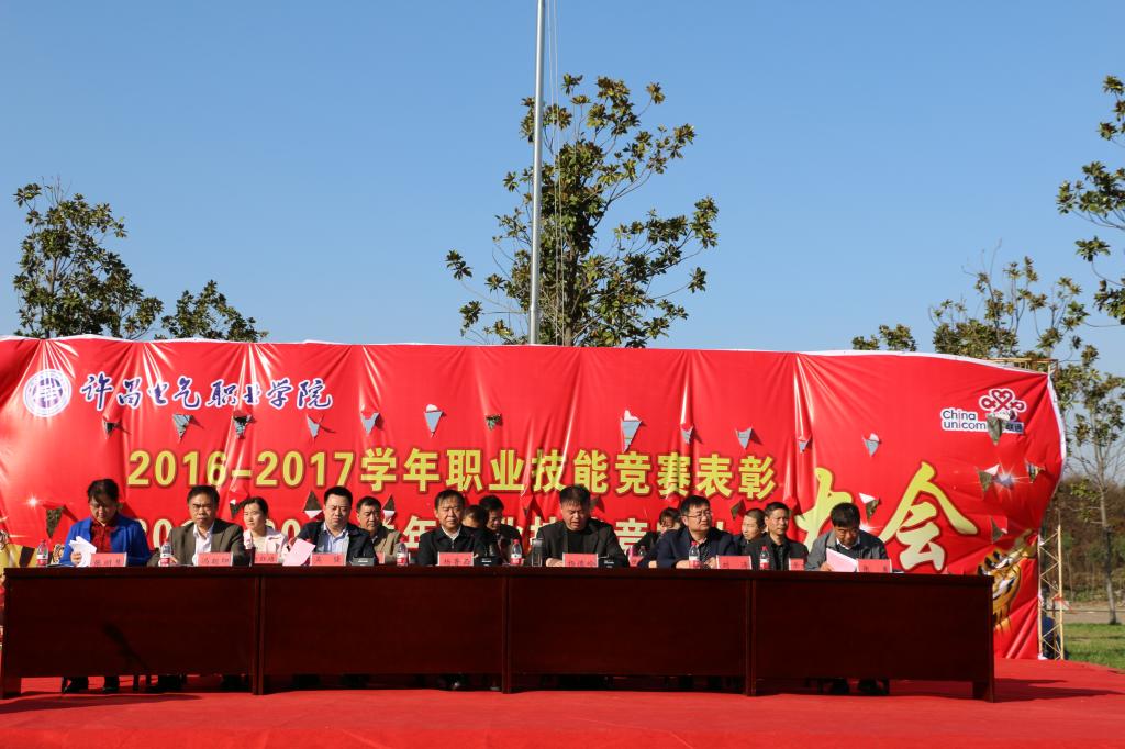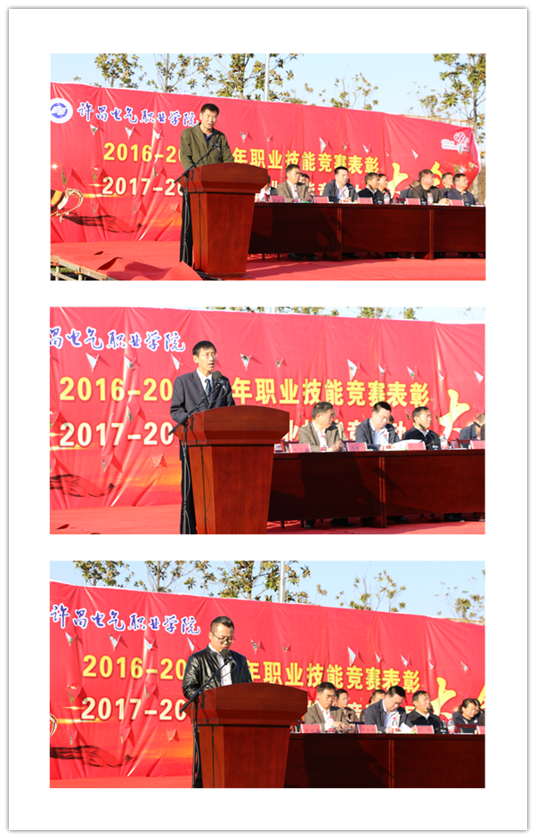为及时总结我院参加国赛、市赛、院赛技能大赛的经验,以昂扬的斗志和良好的精神面貌备战2017-2018学年各项技能大赛,11月3日,学院在北广场召开2016-2017学年职业技能竞赛表彰2017-2018学年职业技能竞赛动员大会。许昌市人社局副局长吴强和学院领导杨鲁西,杨德岭,刘涛,冯朝印,张勇,张明慧一起出席会议,并对参加2016-2017学年国赛、市赛、院赛技能大赛的先进单位、获奖个人进行颁奖,全体师生参加了此次大会。会议由院长杨德岭主持。
