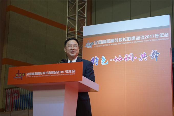 11日上午,全国高职高专校长联席会议2017年年会开幕仪式在常州工程职业技术学院体育馆举行。教育部职业教育与成人教育司司长王继平,江苏省教育厅副厅长王成斌,教育部职业教育与成人教育司副司长谢俐,常州市委常委、宣传部长、科教城党工委书记徐光辉,常州市副市长方国强,全国高职高专校长联席会议荣誉主席李进,中国职业技术教育学会常务副会长兼秘书长刘占山等领导、嘉宾、与会人员参加了开幕式。开幕式由全国高职高专校长联席会议主席董刚主持。