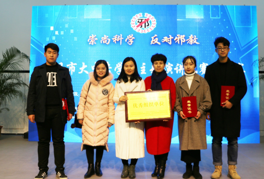 此次决赛从各大中专院校中共选拔出15名参赛选手,我院信息工程系孙一、艺术系李昀啸、王雅洁在决赛现场,深刻批判邪教残害生命聚敛钱财的罪恶本质,热情宣扬科学的重要性,精彩的表现赢得台下观众的阵阵掌声。