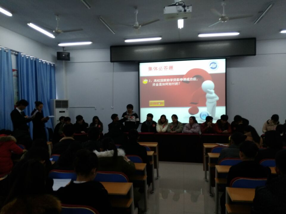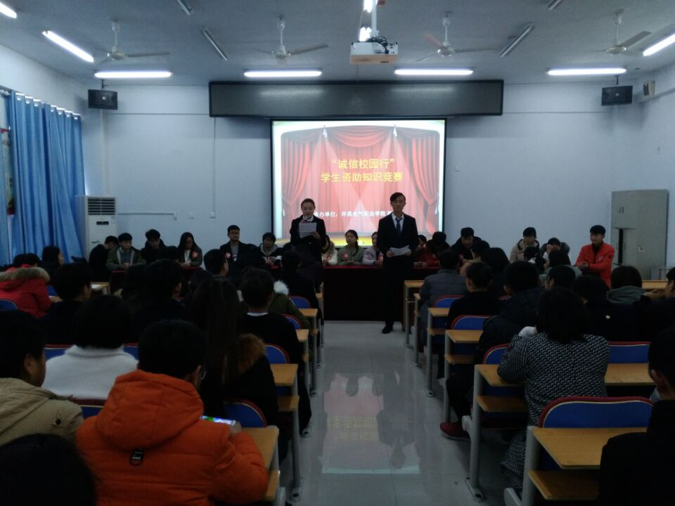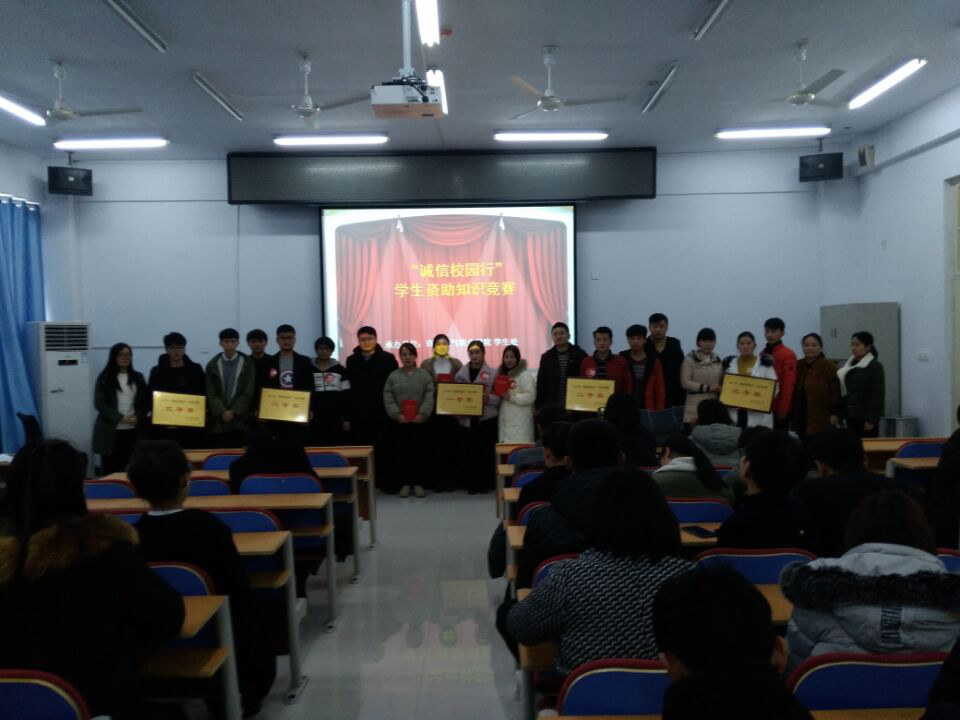 为提高我院学生的诚信意识和观念,进一步促进诚信校园建设,推动我院学生资助育人工作持续、健康开展,我院学生处资助管理中心于2017年12月28日下午在二期教学楼111举办“诚信校园行”知识大赛。