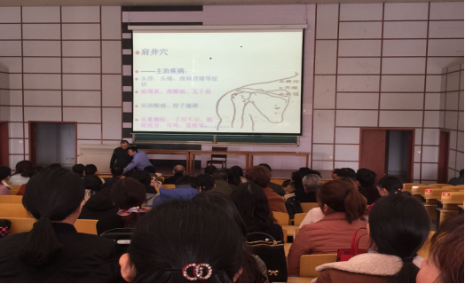 讲座内容丰富,包含了突发公共卫生事件防范知识技能;环境污染带来的危害以及防护知识;职业性疾病及慢性病 (肩周炎,颈椎病等)的预防改善;中医养生知识及亚健康的综合治理等丰富的健康知识。梅老师给大家讲解并演示了心肺复苏(紧急救生术)和CPR人工呼吸等急救知识和技能,使大家更好地了解和掌握了现场急救知识和技能,提高了自救和互救及现场救护能力,有利于在突发事件的第一时间对伤病员进行及时、正确、有效的现场救护,把伤害降到最低。老师针对教师久坐长站等情况,讲诉了职业病的预防及改善。仔细讲解肩周炎、颈椎病等相对应的穴位,通过现场互动互学的方式,让大家学习到了如何自我保健及治疗,使教职工对职业病有了更清晰的认识,增强了对职业病的预防意识。