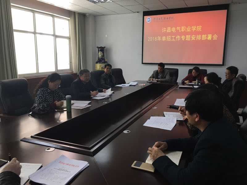 为确保我院2018年单招工作顺利进行,3月26日下午,副院长刘涛主持召开了单招工作专题安排部署会,相关处室、系部负责人参加了会议。