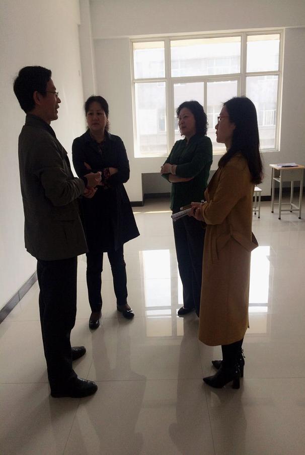 张明慧部长、杨红培书记与任课教师牛艳君老师进行现场交流反馈