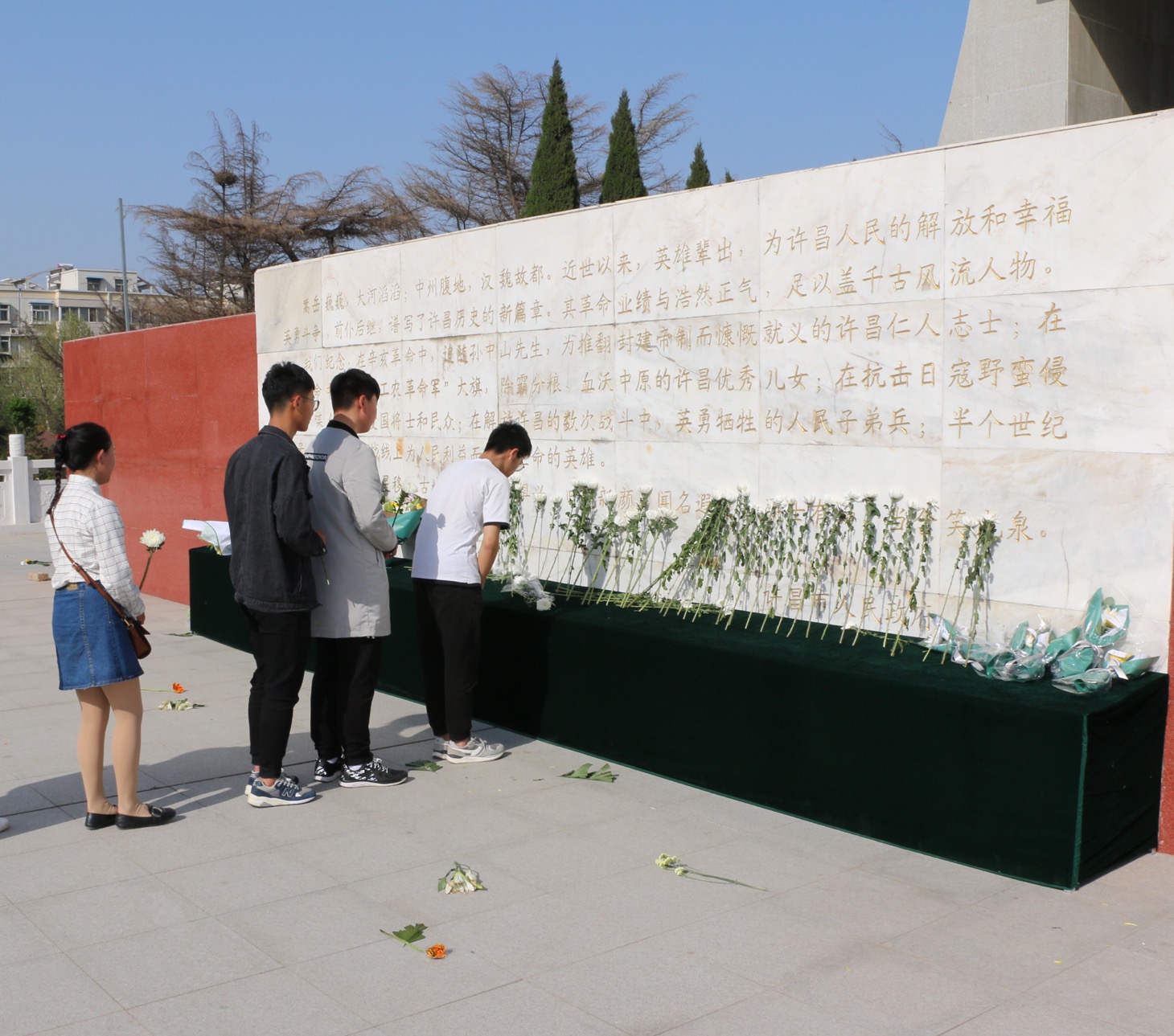 4月2日下午3:00,师生代表在烈士陵园纪念碑前整齐列队,大家着装整齐,神情庄重。首先全体肃立、奏唱国歌并默哀,学生代表为革命先烈敬献了花篮。随后,全体人员向先烈敬献了鲜花并瞻仰烈士墓,最后师生一同参观了革命烈士纪念馆。整个活动过程中,同学们严守纪律,遵守秩序,安静肃穆。