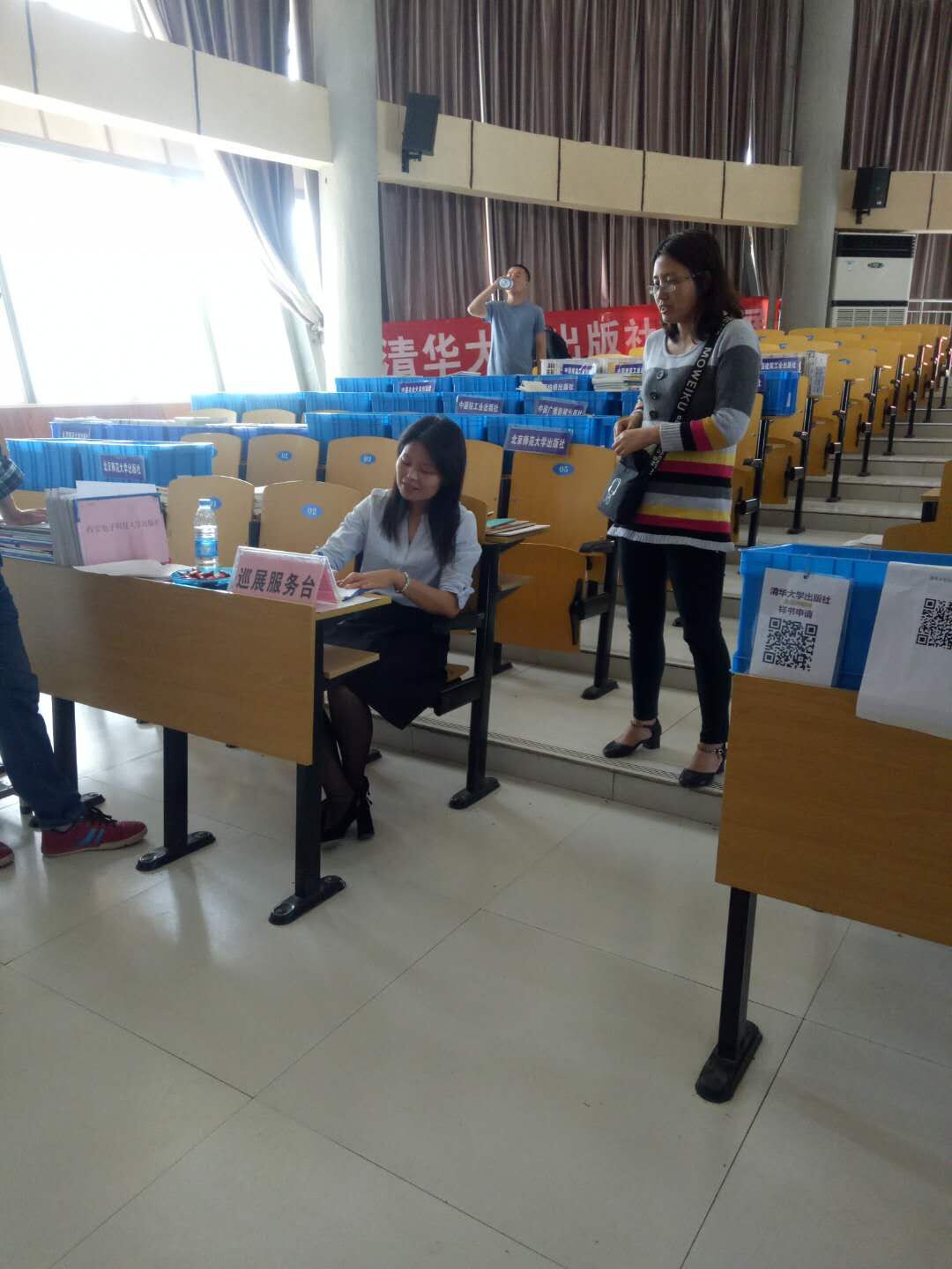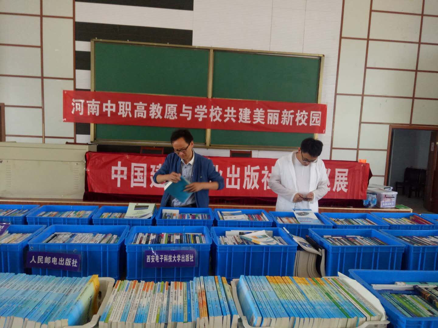 为了推动我院教材建设,提高教材选用质量,搭建教师与出版社之间沟通平台,使教师及时掌握和了解国家规划教材及精品教材的出版信息,帮助教师选购符合政策的优秀教材。2018年5月4日,我院在A教学楼阶梯教室顺利举办了2018年教材巡展活动。此次活动由教务处负责组织、协调,河南中职高教图书发行有限公司具体承办,邀请了高等教育出版社、清华大学出版社、北京大学出版社等二十余家颇具影响力的出版社参加巡展。