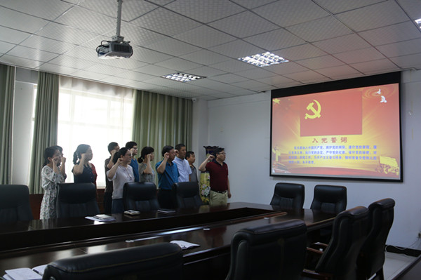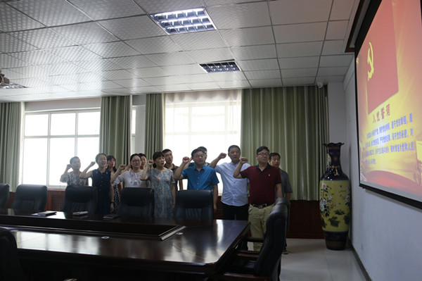 为庆祝中国共产党成立97周年,教育引导支部党员不忘初心、牢记使命,进一步增强政治意识、大局意识、核心意识、看齐意识,扎实推进“两学一做”学习教育常态化制度化,6月20日下午,机关第二党支部组织党员开展了“重温入党誓词”活动。院长杨德岭以普通党员身份参加了活动。