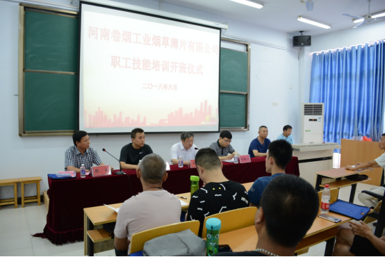 6月25日上午,我院技能培训部承接的河南卷烟工业烟草薄片有限公司职工技能培训开班仪式,在A座教学楼112多媒体教室隆重举行。