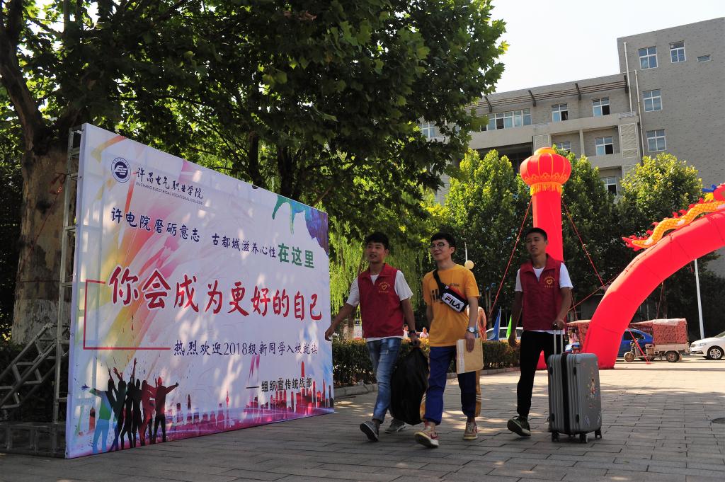 郭怡君同学来自距学院最远的黑龙江省宁安市,从高一开始就定下了要来许昌这座曹魏古城上大学的目标。她说:“刚下火车,就被这座美丽的城市吸引了,感受着学长学姐的关心和热情,让我更加感受到了来电院学习是我无悔的选择。”经济管理系的黄奕同学告诉笔者,电院给他的第一印象就是庄重感,校内建筑和一草一木无不彰显着厚重的城市底蕴、鲜明的职教特色和勃勃的校园生机。