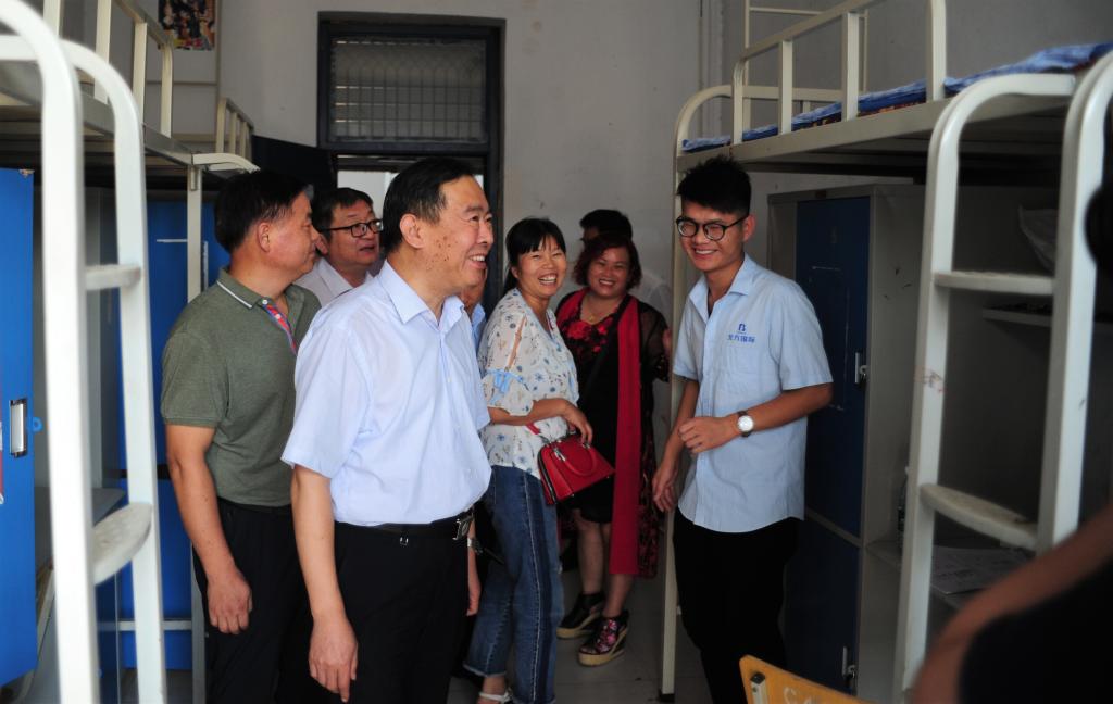 在校园内的几个报到点,院领导强调,天气炎热,学院志愿者与相关负责人应当在维护秩序的前提下加强人流引导、主动提供服务、便利新生入学;同时提醒各系报到处工作人员,要统筹兼顾,统分结合,优化程序,进一步提升新生报到效率。院领导一行参观了几间刚入住的新生寝室,几位新生正在认真梳理床铺,院领导详细询问了他们的家庭情况,并勉励新同学们,要积极做好各项准备,迎接即将到来的军训和大学生活;要积极转变角色,尽快融入校园,进入学习状态,不断充实自我,努力成才。