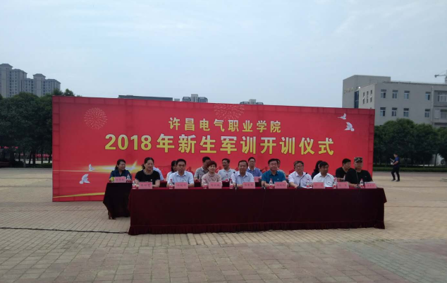 9月10上午,许昌电气职业学院2018级新生军训开训仪式在学院广场举行。院党委书记杨鲁西、院长杨德岭、副院长刘涛、副院长冯朝印、副院长商淑敏、工会主席张勇、院党委委员、组宣部部长张明慧、学院相关部门负责人以及许昌军分区承训单位教官袁战军出席开训仪式,2018级全体新生和辅导员参加了开训仪式。开训仪式由刘涛副院长主持。