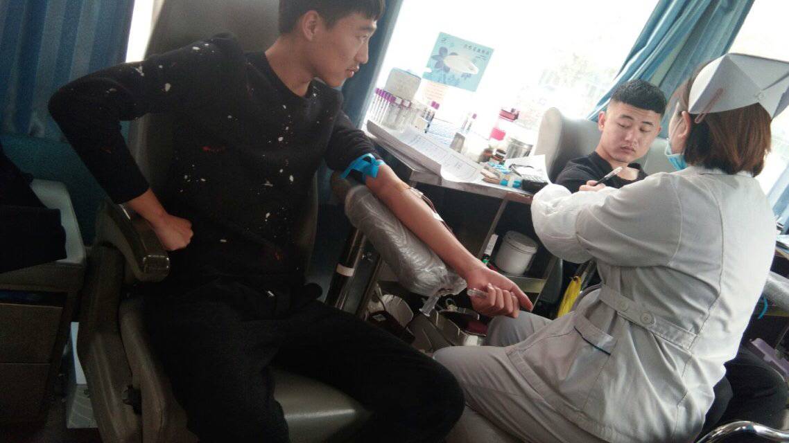 ,在我院青年志愿者协会的帮助下,很快完成了停车、供电等准备工作,11点30分,献血活动正式开始,同学们纷纷加入到无偿献血的行列。活动期间,青协志愿者们积极配合血站工作人员做好各项准备工作,依次组织献血者上车,填表登记、检查初筛、献血、领证,一切有条不紊。虽然天气寒冷,但每一位无偿献血的同学脸上都洋溢着温暖笑容,让身边的人感受到了爱心奉献带来的温暖与幸福。在献血过程中,大部分同学都是第一次献血,但一点都不紧张、恐惧,他们均表示参加这样的活动很光荣,此举动彰显了我院大学生的公益精神和积极为社会奉献的爱心。