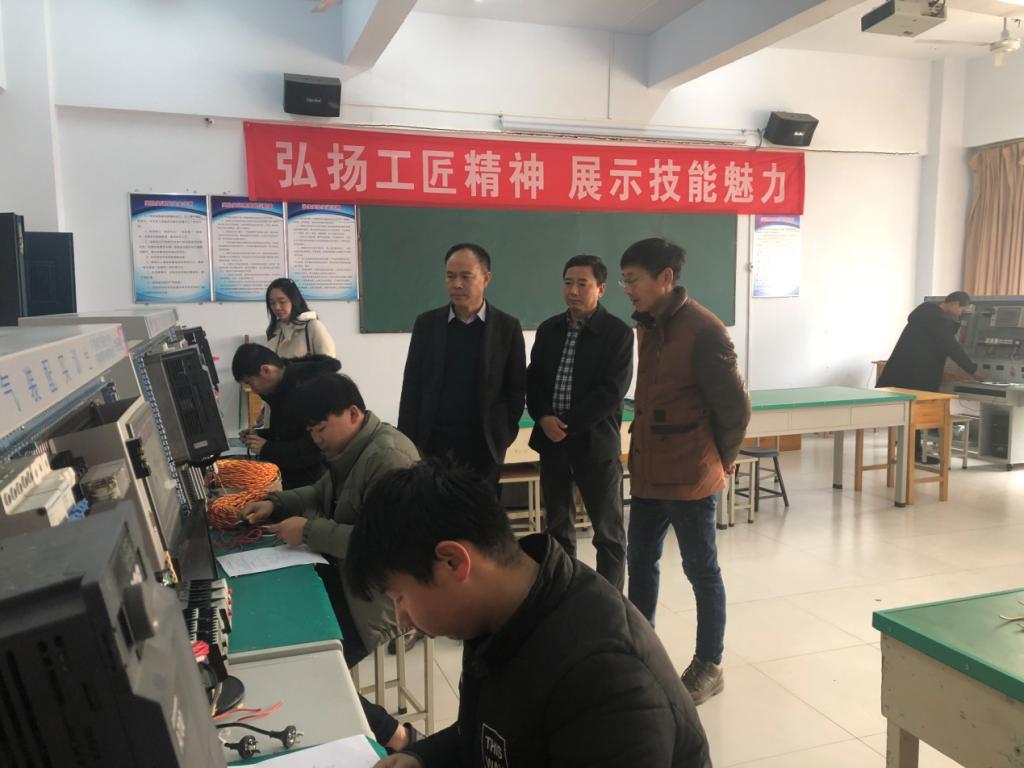 本次考试分为理论和实操两部分,共计三天。涉及鉴定的工种有汽车维修工、电工、焊工、钳工等5个工种。考试期间,市人事局副局长吴强,职业能力建设科科长赵耀、职业能力鉴定指导中心主任李亚磊,职业能力鉴定指导中心副主任苗朝旭亲临考试现场,对考点进行了巡视督导。督查监考、考务组织等工作情况。考试现场秩序井然,考生认真答题,监考教师和考务人员认真负责。督导组对我院组织的此次考试工作给予了充分肯定。并对我院考务组织工作给予了由衷赞赏,充分肯定。吴局长在巡考时鼓励同学们放松心态,稳扎稳打,争取发挥出最高水平;当天下午,本次鉴定工种实操依次开始,数十位实操监考与考务老师坚守岗位,一直陪伴着同学们奋战在各自工位。