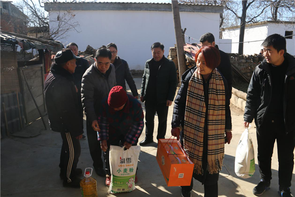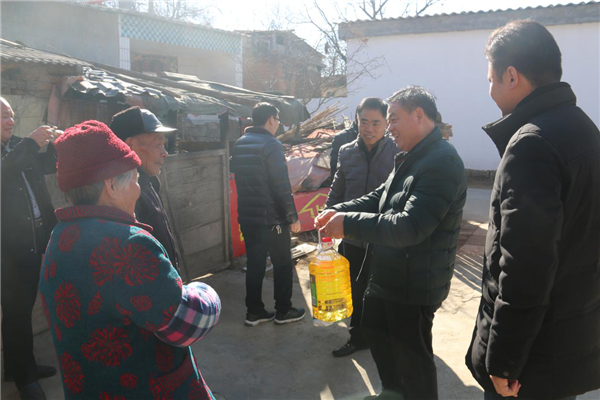 随后,杨德岭一行还来到贫困户杨国全、杨国顺的家,与他们亲切交谈,详细了解他们在生产生活等方面的情况和下一步打算,并为他们提前送去春节的祝福,给每户分别送去了米、面、油等慰问品,并祝愿他们新年有新气象,尽早脱贫致富奔小康。