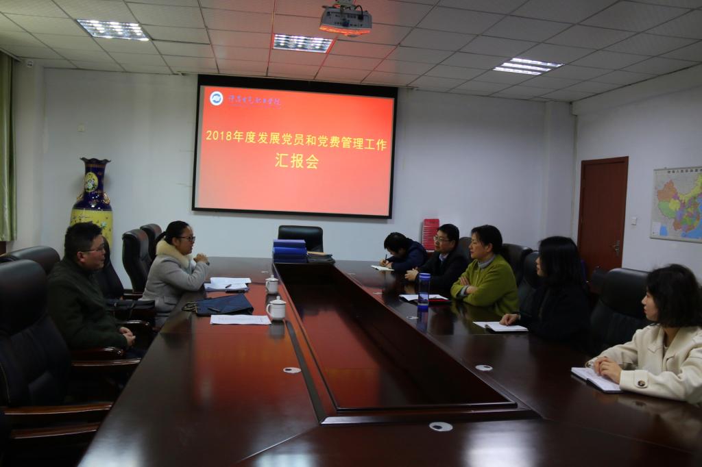 3月8日下午,市委组织部对我院2018年度党费收缴使用管理和发展党员工作进行了督导检查。学院党委委员、组宣部部长张明慧出席会议并向组织部督导检查组进行了工作汇报。