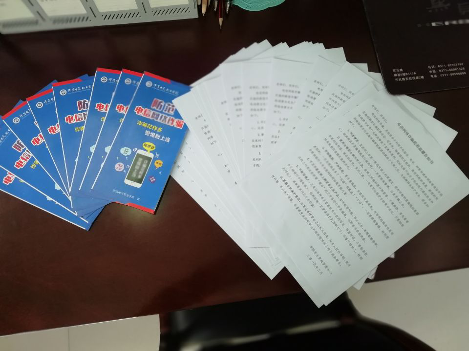 为实现宣传教育全覆盖,学生处资助中心在校园醒目位置张贴了防电信诈骗横幅;在教学楼、宿舍楼前放置展板;共印制和发放《防范电信网络诈骗宣传单》3500份;利用多种平台和手段将防电信网络诈骗知识和案例传递到学生群体。