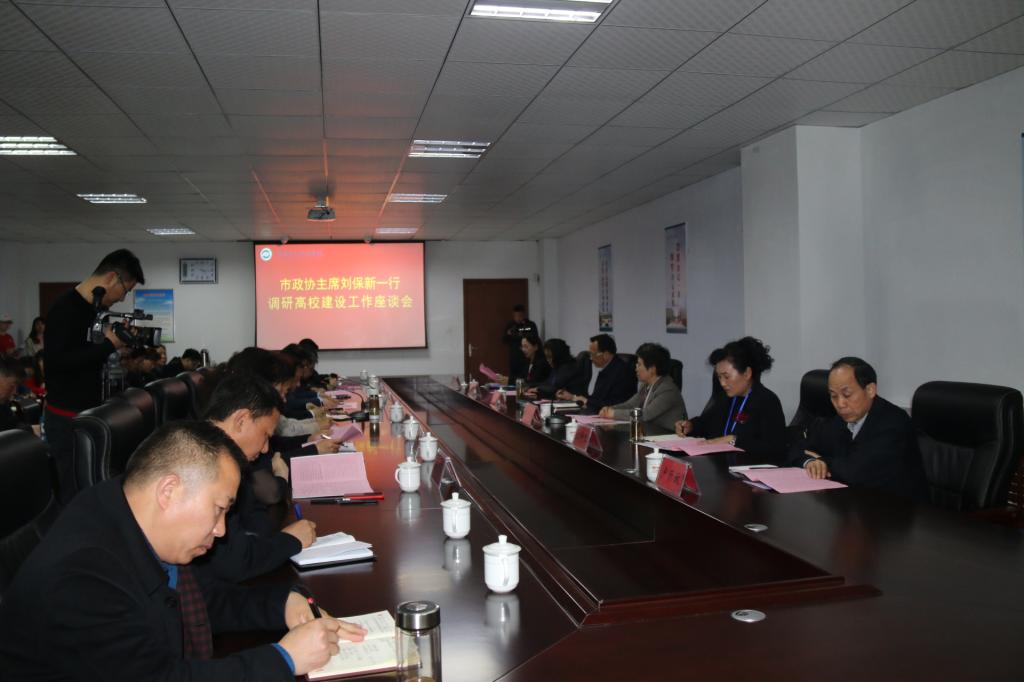 4月11日下午,市政协主席刘保新,政协副主席刘瑞红、秦春梅,市政协秘书长高坤黎一行莅临我院调研高校建设工作,并与我院干部教师进行了座谈。座谈会由学院党委书记杨鲁西主持,学院党委领导班子,中层以上干部和部分教师代表参加会议。
