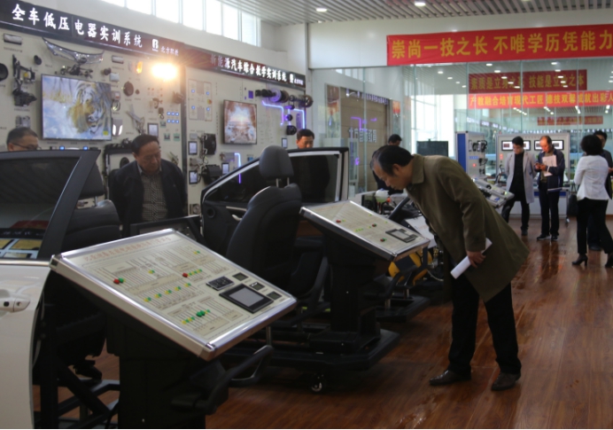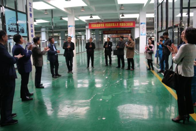 党委书记杨鲁西、院长杨德岭教授,对企业家们的到访表示了热烈的欢迎。副院长冯朝印教授亲做向导,带领大家先后参观了新能源汽车实训室、网络综合布线实训室、电子商务实训室、汽车检车与维修实训车间、工业机器人实训车间等。优美的校园环境让大家赞不绝口,过硬的实训条件让大家摄影留念,先进的育人理念让大家纷纷点赞。
