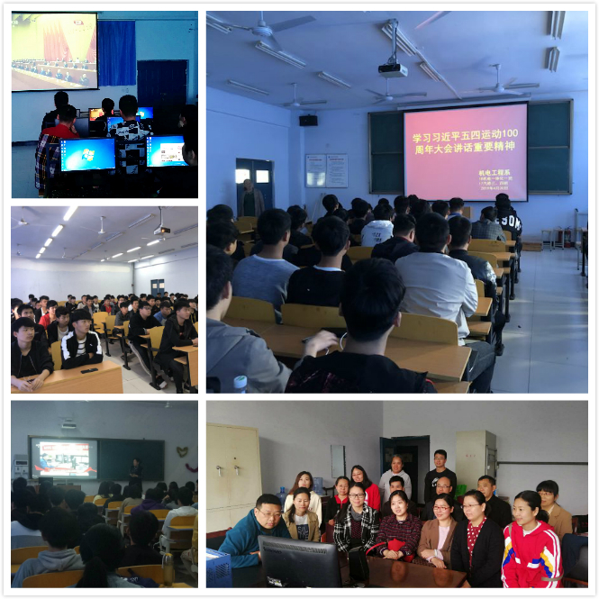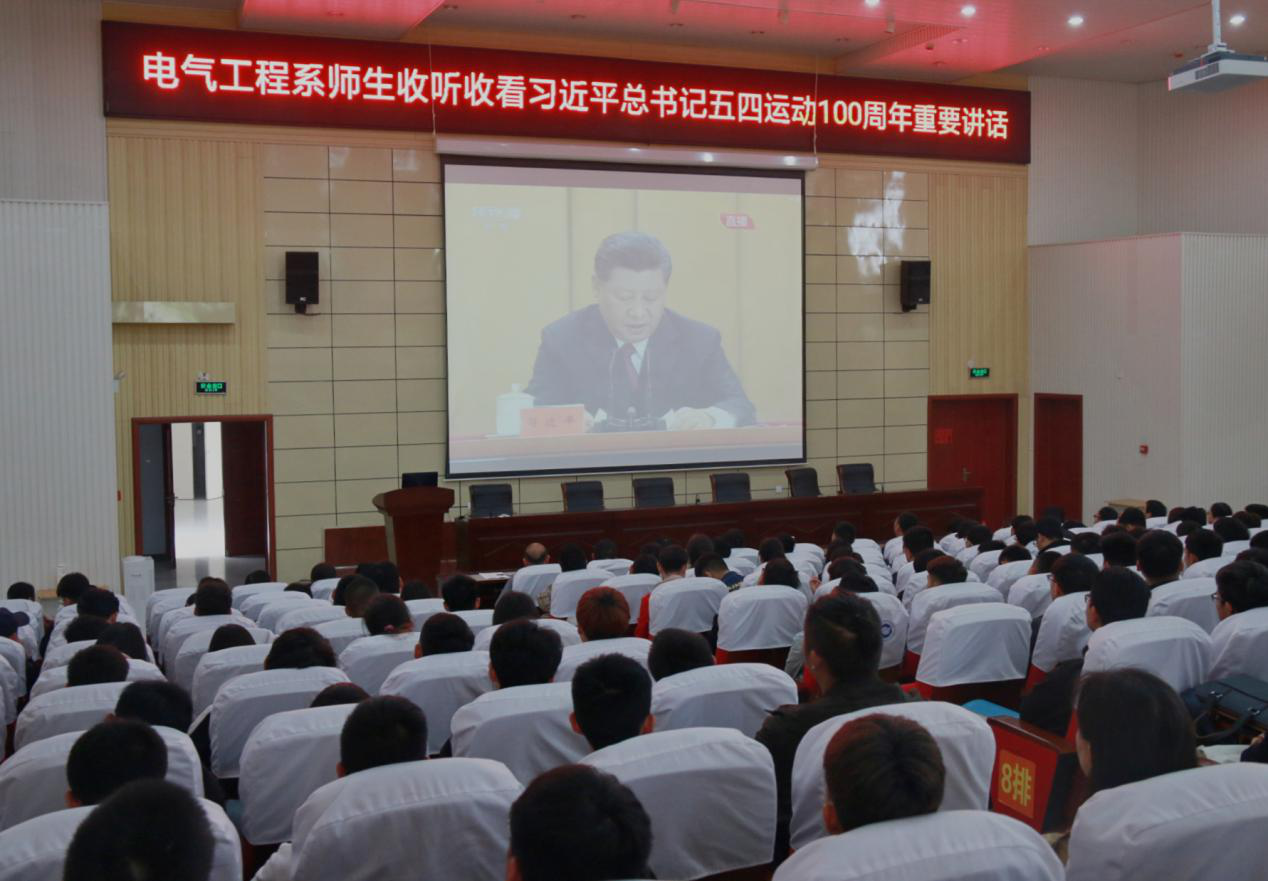 2019年是五四运动爆发一百周年。4月30日上午10时30分,纪念五四运动100周年大会在人民大会堂举行,习近平总书记出席会议并发表重要讲话。学院党委书记杨鲁西,院长杨德岭,副院长商淑敏、刘涛、冯朝印,工会主席张勇,党委委员、组宣部长张明慧和部分职能部门负责同志及全院师生分别组织观看了大会的直播,认真学习了习近平总书记发表的重要讲话。许昌电视台对现场观看情况进行了报道。