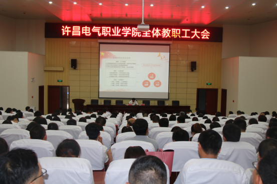 为贯彻落实全省教育大会精神,6月5日,我院在教学B楼第二学术报告厅召开全体教职工大会,党委书记杨鲁西同志作题为《深入学习全省教育大会精神,全面开启职业教育新征程》专题报告,学习传达全省教育大会精神会议,会议由院长杨德岭主持,副院长商淑敏、副院长刘涛、副院长冯朝印,工会主席张勇,党委委员、组宣部长张明慧出席会议,全体中层干部及全校教职工参加会议。
