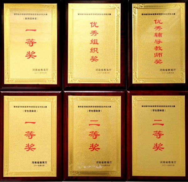 6月23日,由河南省教育厅主办,河南广播电视大学(郑州信息科技职业学院)承办的第四届河南省高等学校信息安全对抗大赛落下帷幕,大赛从全省31支参赛教师队中评选出一等奖5个,我院教师代表队位列其中,2支学生代表队从144支参赛本、专科学生团队中脱颖而出,获得一等奖1项,二等奖2项的好成绩。我院被教育厅授予“优秀组织奖”。
