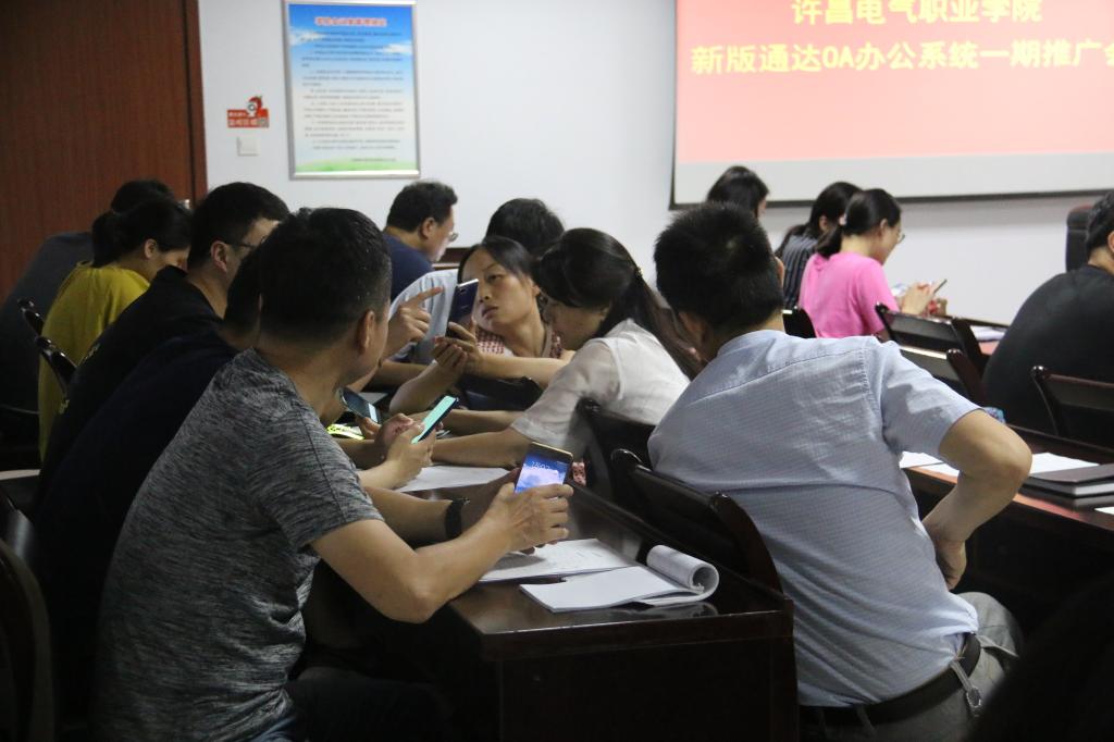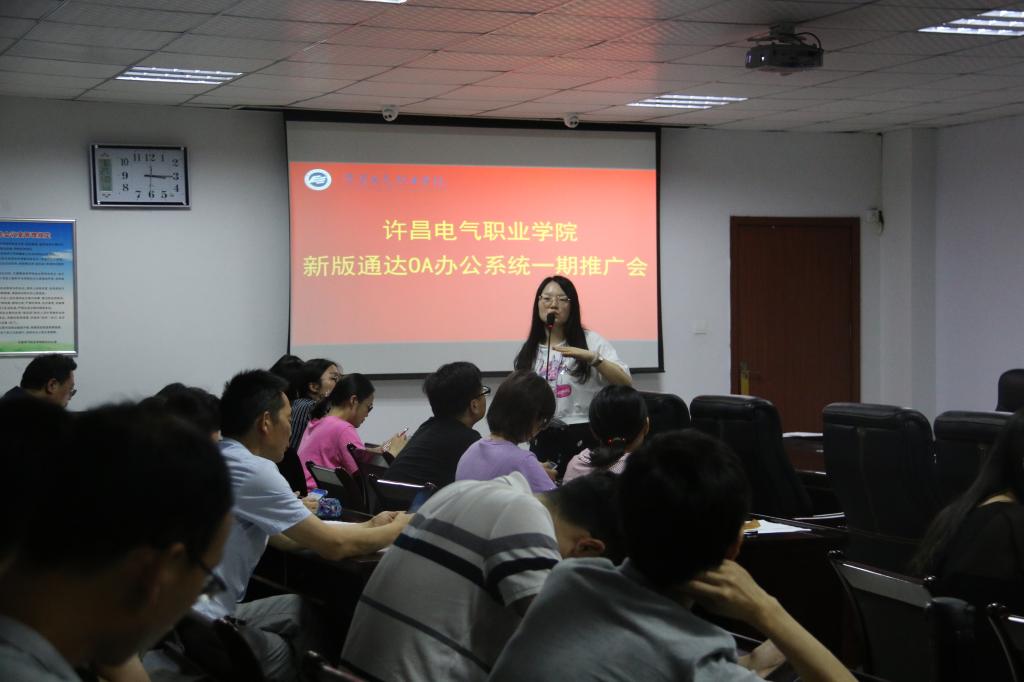 2019年6月27日下午3点,我院在行政楼第一会议室启动许昌电气职业学院新版通达OA办公系统一期推广会,OA办公系统管理员郝园园主持会议,各部门信息管理员参与会议。