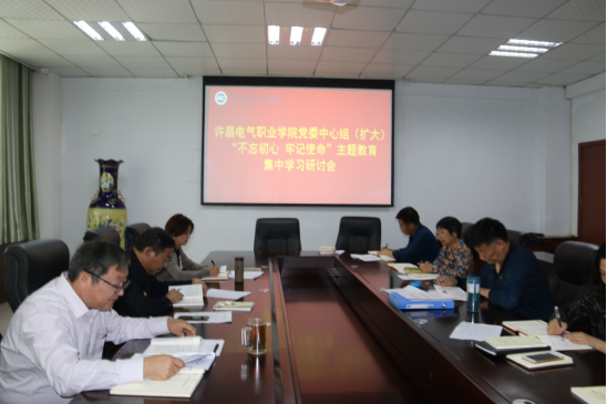 9月20日上午,许昌电气职业学院党委中心组(扩大)开展“不忘初心,牢记使命”主题教育第三次集中学习,深入学习习近平总书记关于“不忘初心,牢记使命”重要论述,学习贯彻习近平新时代中国特色社会主义思想。学院党委书记杨鲁西主持会议,学院领导班子成员、副县级干部参加学习。