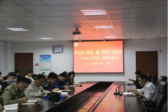 9月27日,在全国上下喜迎新中国成立70周年之际,为不断把“不忘初心、牢记使命”主题教育引向深入,学院党委委员、副院长冯朝印以“牢记初心使命,做‘四有’好教师”为主题上了一堂专题党课,教务处、设备与实训管理中心、机电工程系、公共教学部全体党员干部参加。