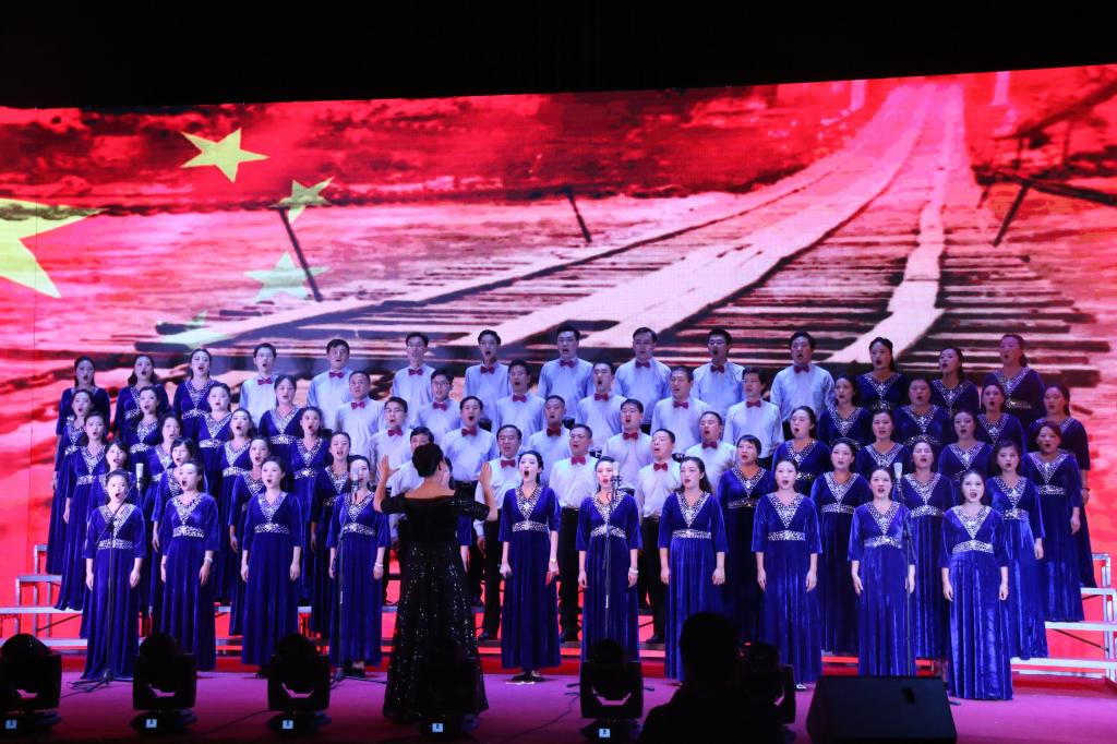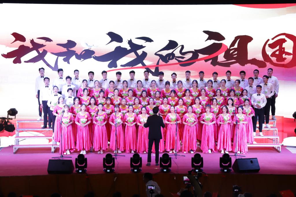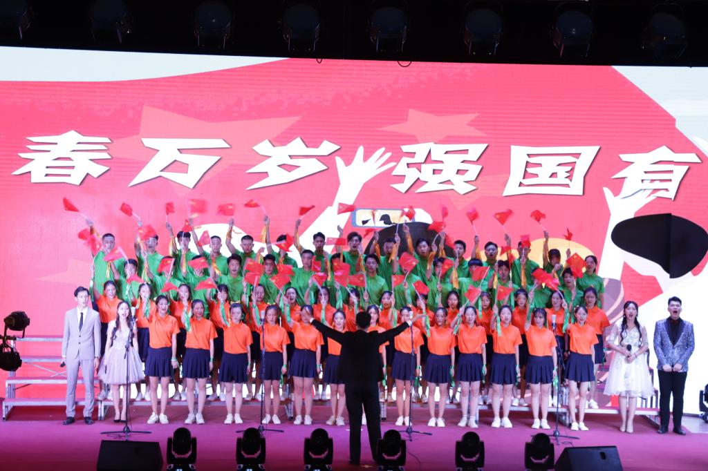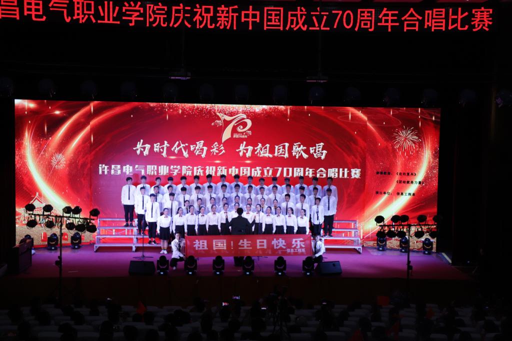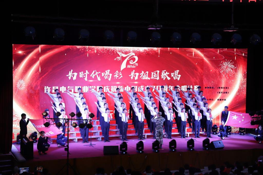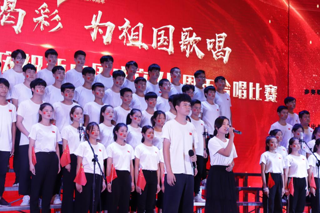 一首首脍炙人口的经典老歌,唱响在礼堂的上空,展现了我院师生昂扬向上,团结奋进的精神风貌。台下观众挥舞国旗,齐声高歌,共同祝福祖国明天更美好。
