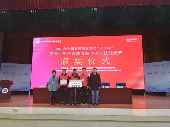 11月1日至3日,2019年全国高等职业院校学生“智能供配电系统安装与调试技能竞赛”在黄河水利职业技术学院举行,来自全国各省、市、自治区的51所高职院校代表队参加了比赛,由我院电气工程系学生佘栋、黄裕山、宋汪洋组成的代表队(指导教师:周刚、张赛)荣获团体优秀奖。