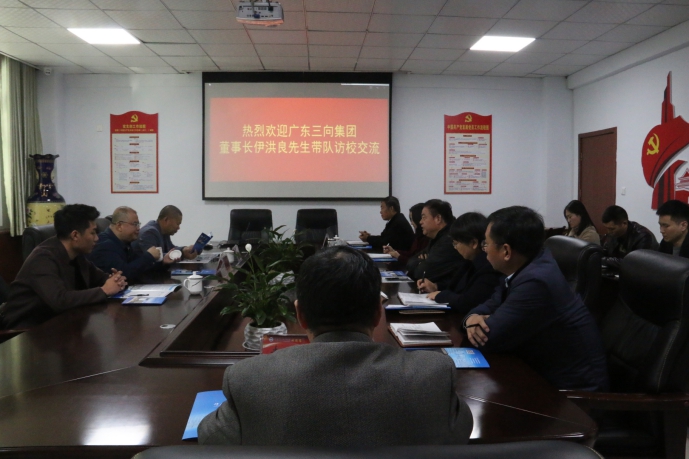 11月20日,广东三向集团董事长伊洪良一行到我校访问交流。学院院长杨德岭、副院长冯朝印热情接待了来宾。办公室主任胡晓敏、教务处长朱焕芝、电气工程系负责人朱金伟参与交流。交流会上,院长杨德岭对伊洪良董事长一行来校访问表示热烈欢迎,并重点介绍了我校四位一体办学成果。伊洪良先生向我校推介了三向集团在智能制造人才培养与实践方面的探索成果。