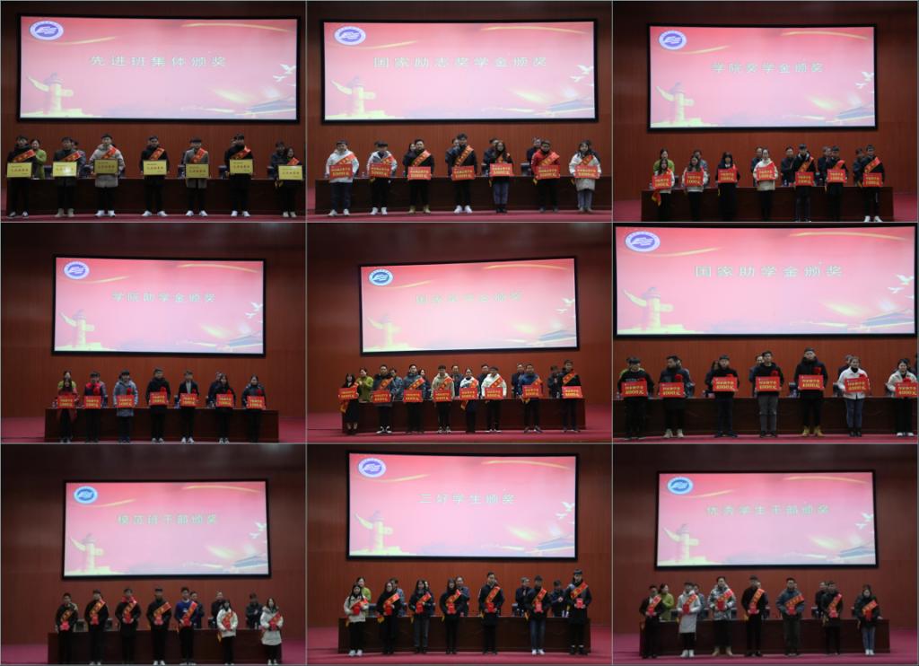 首先,纪委书记张明慧宣读《许昌电气职业学院关于表彰2018——2019学年先进集体和先进个人的通知》,副院长冯朝印宣读《河南省教育厅关于对2018——2019学年度国家励志奖学金获奖学生的批复》,副院长商淑敏宣读了2019年国家奖学金获得者名单。学院领导为获得先进班集体的代表颁发奖牌,为获得三好学生、模范班干部、优秀学生干部代表颁发荣誉证书,为获得学院奖学金、学院助学金、国家助学金、国家励志奖学金、国家奖学金学生代表颁发荣誉奖牌。