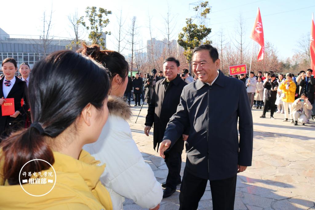 12月27日上午,我院第三届迎新年长跑活动在我院西门广场举行,本次长跑活动的主题为”激昂青春,领跑未来—我与祖国同行”。学院党委书记杨鲁西,院长杨德岭,副院长刘涛、冯朝印、纪委书记张明慧,学生处处长张慧敏以及各系部负责人、各系学管老师参加了此次活动。本次活动吸引了全院1200多名学生报名参赛。