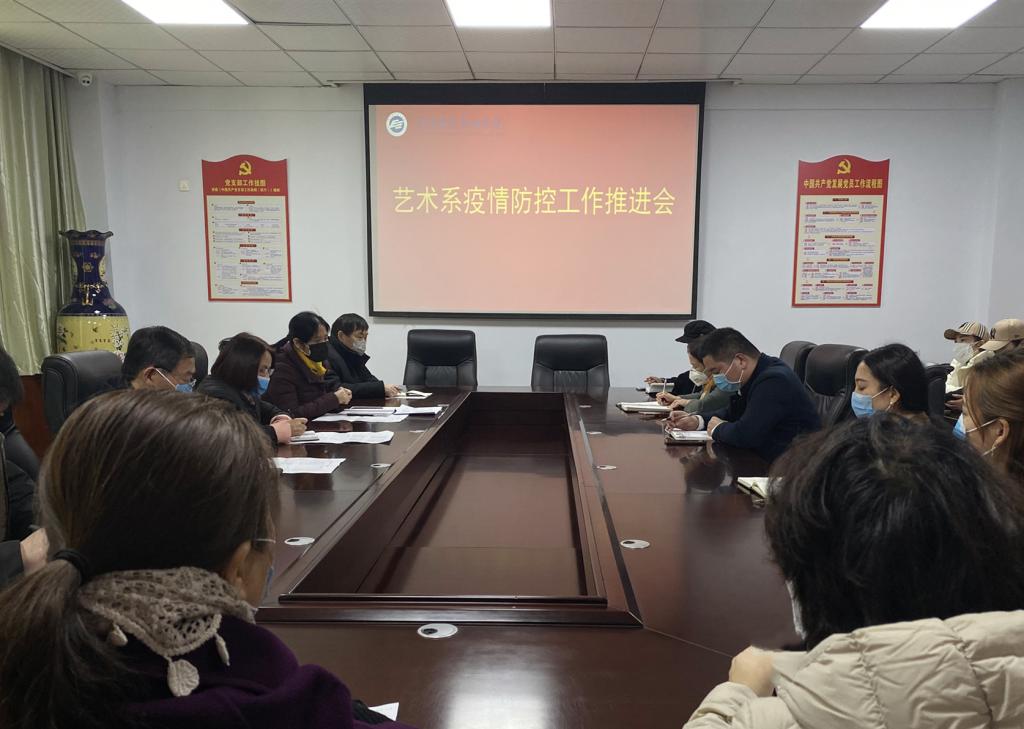 ——艺术系 3月5日下午在学院行政楼二楼会议室召开疫情防控工作推进会。副院长商淑敏,艺术系主任阎瑾瑜、董淑红,疫情防控年级长成教部主任郭松山、科研外事中心主任潘俊峰、人事处郭红军主任、合作办学单位负责人及艺术系全体班主任参加了会议。