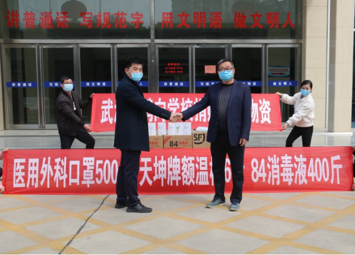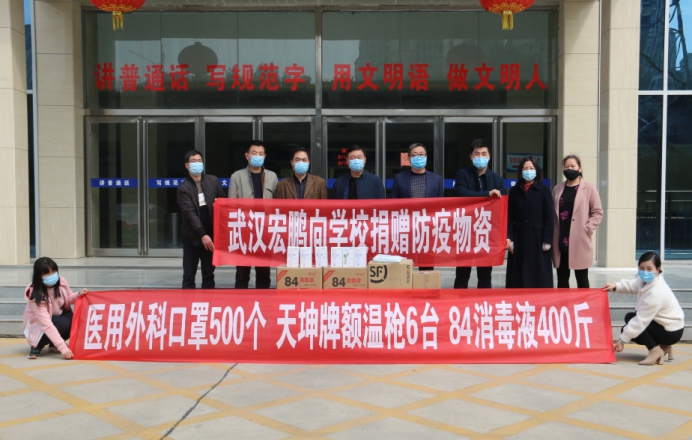 为助力学院全力抗击疫情,武汉宏鹏教育有限公司,主动向学院捐赠抗疫物资。3月16日上午十点,捐赠仪式在行政楼南门进行,学院院长杨德岭,副院长刘涛,副院长冯朝印,办公室主任胡晓敏,后勤与基建管理处主任朱宏杰,信息工程系党总支书记陈晓红,武汉宏鹏教育有限公司校区负责人刘爱君参加了捐赠仪式。