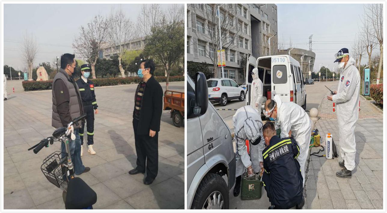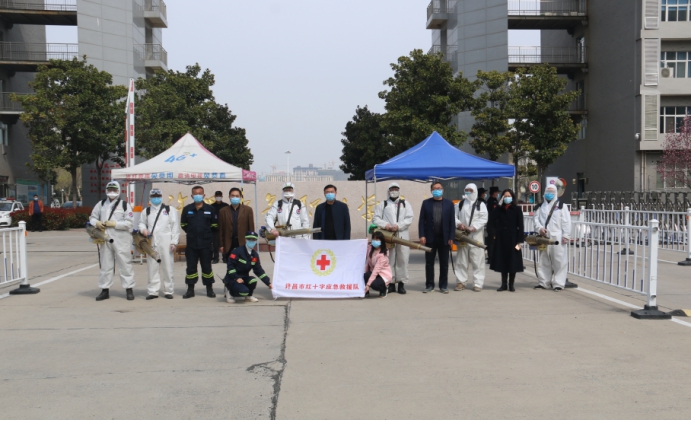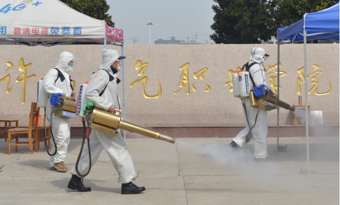 伴随新型冠状病毒引起的肺炎疫情在我市得到有效控制,安全复工复产复学成为社会各界关注的重点、热点。为全面贯彻落实好省委、市委疫情防控教育专办“外防输入、内防扩散”的决策部署,确保学院环境安全,复学工作有序推进。3月16日上午,许昌市教育局、疫情防控教育专班,站在全市共同抗“疫”、安全复学的高度,协调许昌市红十字应急救援队来我院进行科学消杀。救援队在队长高煜同志、付队长王孙峰的带领下,出动志愿服务队员12人(周龙,屈建磊,贾发军,牛辉,杨建军,姚俊峰,李玉霞,李书斌,罗军,赵卓霖)、车辆5台,弥雾机6台,对我院教学楼、寝室楼、校园、图书馆、办公楼等区域进行全面消杀。