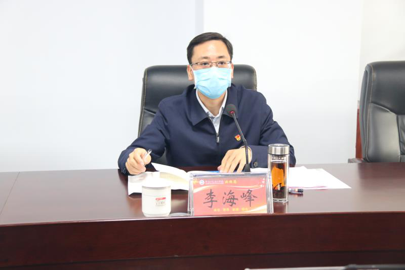 面对当前疫情防控形势,李海峰指出,现在国内疫情防控形势虽有好转,但绝不能有任何麻痹松懈思想,要深入贯彻落实习总书记重要指示精神,毫不松懈抓好疫情防控各项措施,做到严防死守、万无一失,为学校开学提供安全环境。现阶段,要严防境外输入,务必高度重视,要精细安排,科学部署,责任落实落细。要继续稳扎稳打做好校园防控,全力谋划好师生返校复学各项准备工作。