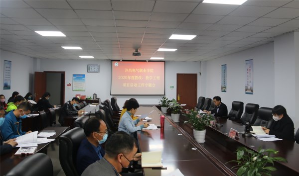 会上,教务处韩基伟解读《许昌电气职业学院关于做好2020年度教学工程项目申报工作的通知》和《许昌电气职业学院关于做好2020年度高等职业教育教学改革研究与实践项目立项工作的通知》,并对项目的申报材料注意事项、申报时间节点做了具体明确的说明,同时韩基伟宣读了《许昌电气职业学院关于开展2020年度教学名师评选表彰工作的通知》和《许昌电气职业学院关于开展第一届技术能手评选表彰活动的通知》。随后教务处李龙解读了《关于印发的通知》和《关于印发的通知》相关要求,同时李龙对选拔标准,报送时间做了详细说明。最后,设备与实训管理中心主任郝强同志针对实训室建设规划方面做了发言,他表示,实训室建设要提前谋划、提前准备,有一定的前瞻性,建设方案的起点要高、要密切结合专业建设,避免重复建设。教务处处长朱焕芝要求各系部要选择感兴趣、基础好、有优势的课题进行申报,切实做到调研分析论证,注重比较优势。