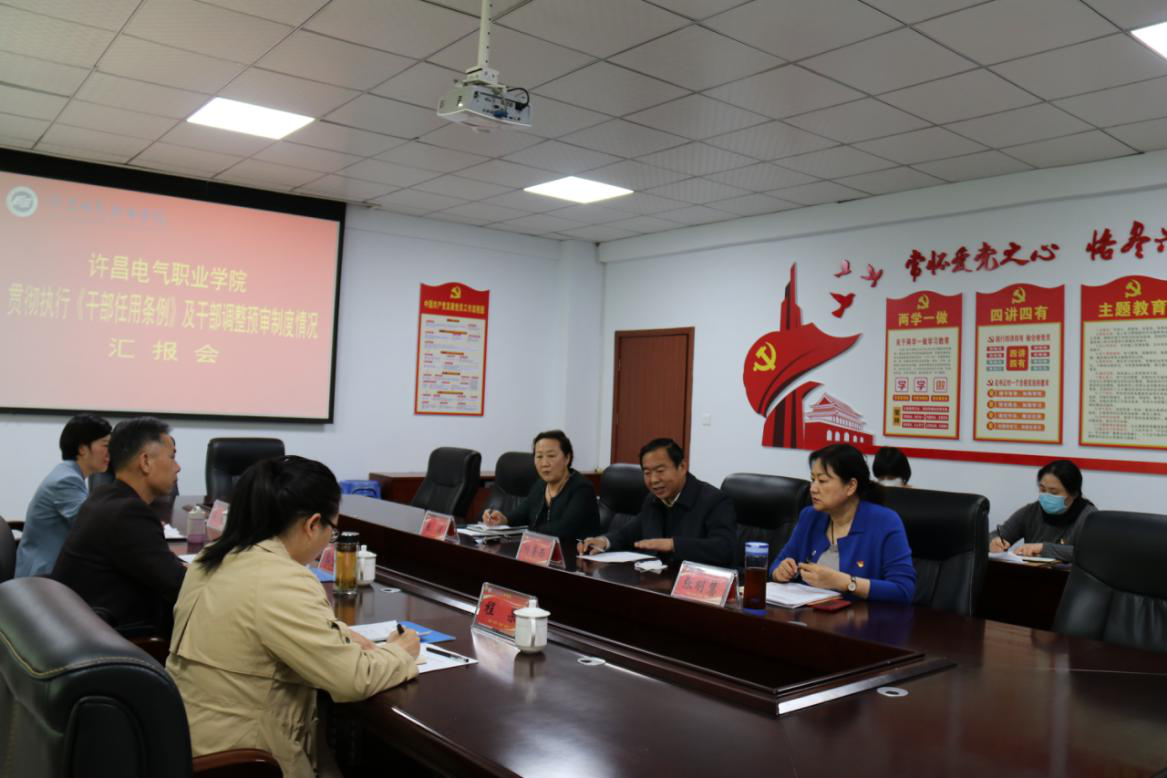 随后,学院纪委书记张明慧从政策学习宣传、坚持党管干部原则、坚持好干部标准和树立正确用人导向、执行干部选拔任用工作政策规定、遵守组织人事纪律和匡正选人用人风气、促进干部担当作为等9个方面向调研组同志详细汇报了我院贯彻执行《干部任用条例》及干部调整预审制度情况。张明慧表示,今后学院将坚持从满足学院教育事业发展需要出发,坚持“事业为上、人岗相适、人事相宜”的原则,不断提高选人用人科学化水平,匡正选人用人风气,真正把群众公认、忠诚干净、履职担当的好干部选出来、用起来,努力形成结构合理、作风过硬、素质优良的干部队伍,为推动学院各项事业持续健康稳定发展提供坚强的组织保证。