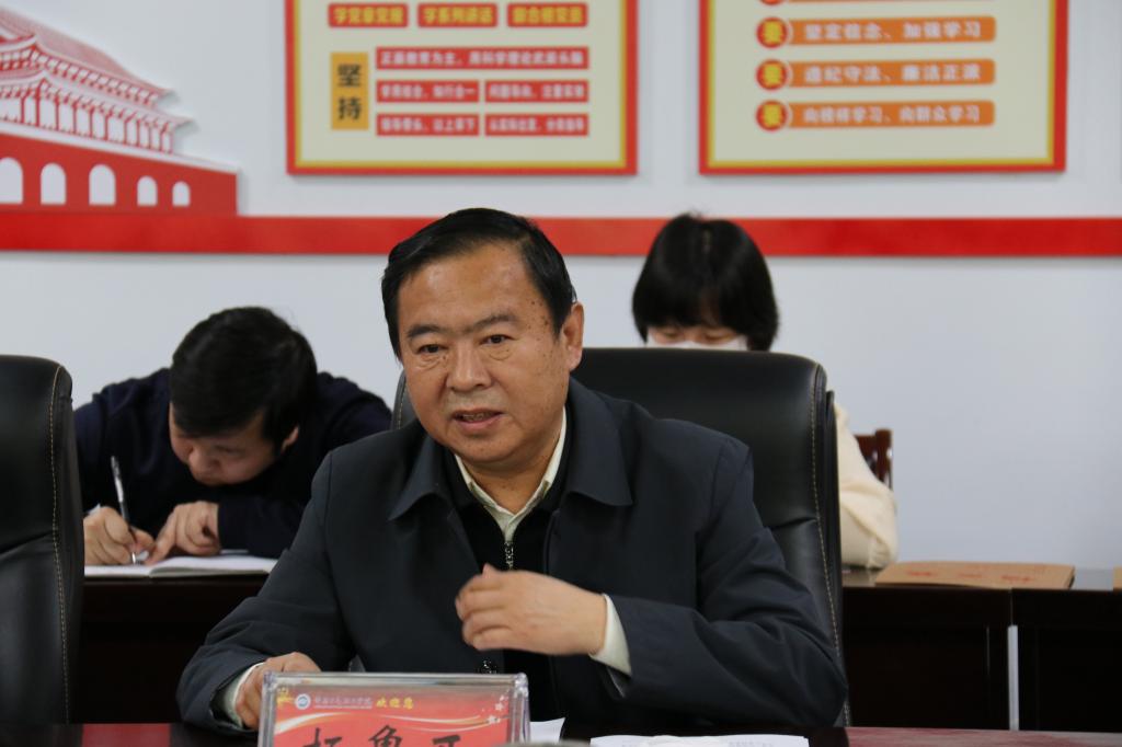 汇报会上,学院党委书记杨鲁西首先向调研组同志介绍了我院干部队伍建设的基本情况。杨鲁西谈到,近年来在市委组织部的支持帮助和正确指导下,学院党委认真学习贯彻《党政领导干部选拔任用工作条例》,严格执行干部调整预审制度,按照新时期好干部标准,严把选人用人政治关、品行关、能力关、作风关、廉洁关,持续加强干部队伍建设,有力推动了学院教育事业高质量发展。希望调研组的同志们通过检查指导,能够指出我院工作中存在的弱项和不足,帮助学院不断提高选人用人科学化、规范化水平。