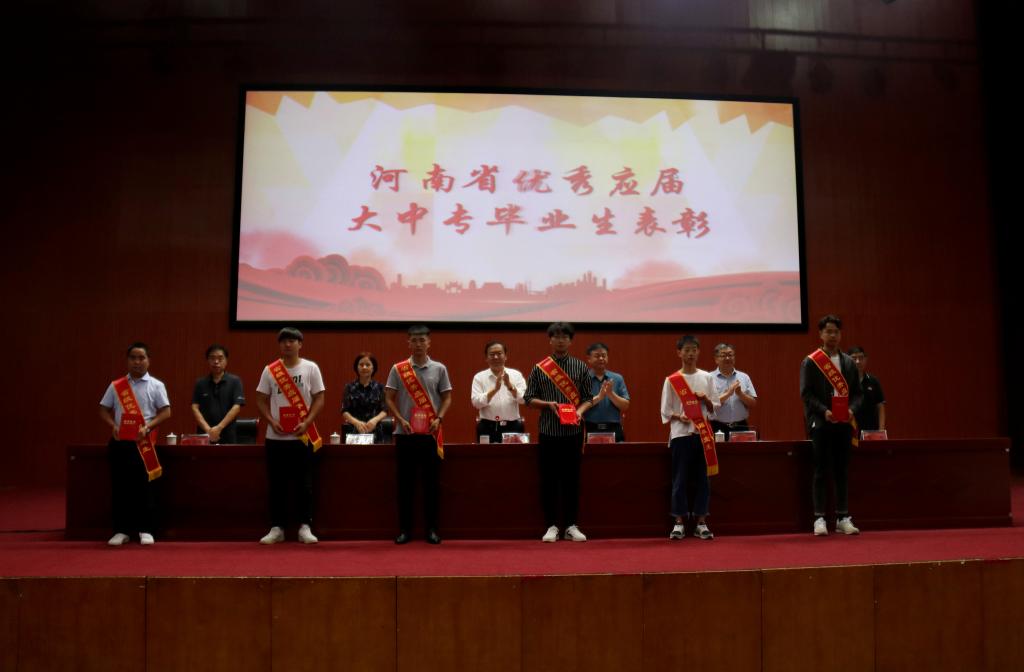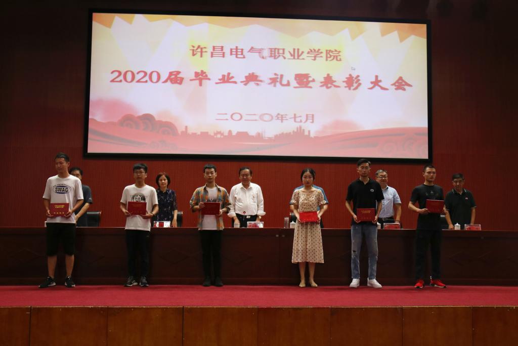 毕业典礼在庄严的国歌声中拉开序幕。副院长刘涛宣读了《河南省教育厅关于表彰2020年河南省优秀应届大中专毕业生的通知》和《许昌电气职业学院关于表彰2020年优秀应届毕业生的决定》。学院领导为获得2020届省级、校级优秀毕业生颁发荣誉证书并予以祝贺。