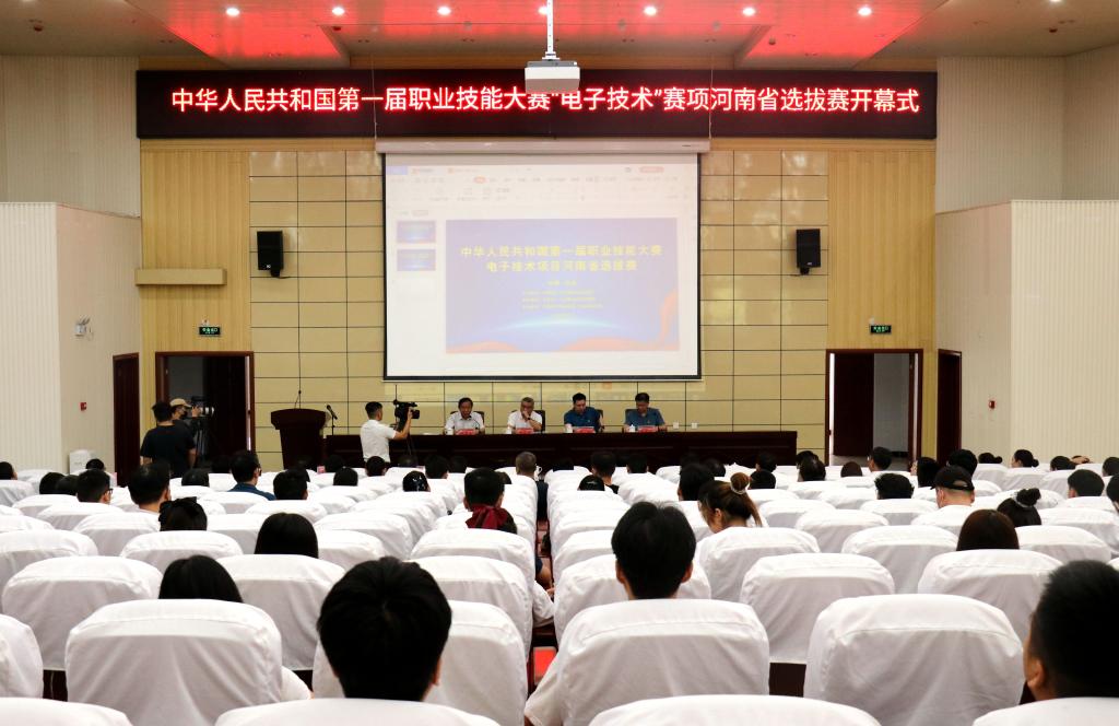 9月19日,中华人民共和国第一届职业技能大赛电子技术赛项河南省选拔赛在我院隆重举行。许昌市人力资源和社会保障局副局长张述平、副局长吴强,学院党委书记杨鲁西,院长杨德岭,全体院党委委员,有关处室、系部负责人、教师代表、裁判以及来自全省11个代表队的领队、指导老师和选手参加了本次大赛开幕式。开幕式由院党委书记杨鲁西主持。